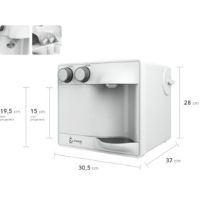 Purificador com compressor econômico e alta capacidade de refrigeração com baixo consumo de energia. É o purificador Everest mais compacto. Ideal para apartamentos pequenos. Temperatura da água gelada à beça, natural ou misturada. Armazenamento de 1,2L com muita água gelada à beça. Água em temperatura natural à vontade mesmo sem energia elétrica. Bandeja pingadeira e bico removível para facilitar a higienização. Versatilidade: pode ser instalado na bancada ou parede. Em 4 cores: branco, preto, prata ou cereja Garantia de Água Gelada à Beça O sistema de refrigeração por compressor da Everest tem um termostato inteligente que desativa o compressor assim que a água atinge 8ºC. Isso garante água gelada à beça sempre que você precisar, sem gastar energia desnecessária. Tecnologia de filtração em 2 etapas O refil Everest filtra impurezas e purifica, impedindo a proliferação de bactérias, reduzindo cloro, odores e sabores indesejados. Blindagem que protege e conserva Armazenamento hermético: além de manter a temperatura, uma vez filtrada, a água não entra em contato com mais nada. Menos garrafa PET, mais Everest Com a vida útil de até 4.000L do refil Everest, entre 9 a 12 meses de durabilidade, você evita o descarte de mais de 2.500 garrafas PET de 1,5L ou 200 galões de 20L. Economia de energia O compressor consome menos energia e gela um volume maior de água, superando os purificadores com placa eletrônica.