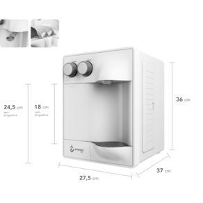 Purificador com compressor econômico e alta capacidade de refrigeração com baixo consumo de energia. Ideal para casas, pequenos comércios e escritórios. Água em temperatura natural à vontade mesmo sem energia elétrica. Bandeja pingadeira e bico removível para facilitar a higienização. Pode ser instalado na bancada ou parede.Função retrolavagem