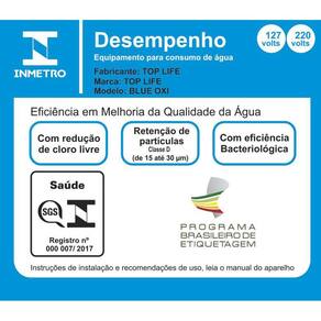 Purificador de água Top Life BlueOxi 2 em 1, alcalina e ozonizada. Possui alta performance na purificação, elevando o pH da água e liberando ozônio para esterilização de alimentos. Ideal para uso doméstico e comercial.Função retrolavagem