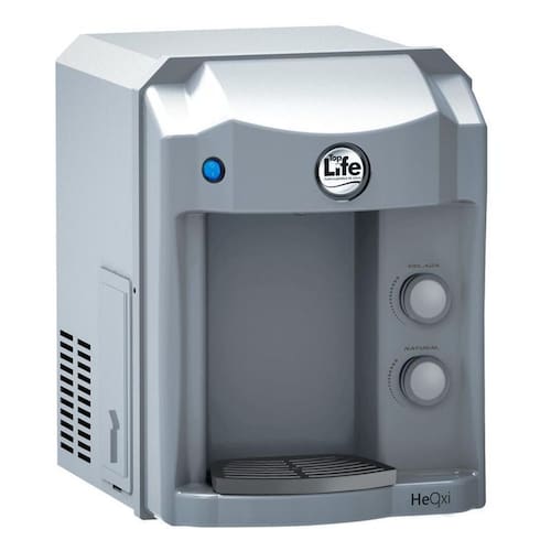 Purificador de água Top Life HeOxi 2 em 1, oferece água alcalina e ozonizada. Possui sistema de refrigeração, ideal para residências e comércios.