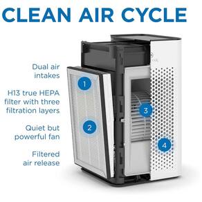 FILTRAGEM HEPA H13 confiável para remover 99,9 das partículas, incluindo odores, fumaça, pêlos de animais, poeira e mais, até 0,1 mícron de tamanho. Captura partículas mais finas do que HEPA H11 0,3 mícrons.