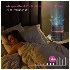 Economize energia e seja eficaz O purificador atualizado usa um motor e ventilador integrado sem escova 12V 8W DC versão mais antiga 5W com mais de 80 de eficiência energética Com apenas 8 W em velocidade máxima, seu filtro de 4 estágios limpa partículas tão pequenas quanto 0,3 mícron em um espaço de 89,89 metros quadrados com 2 circulações em 1 hora 210 maior que a versão anterior.