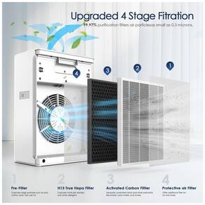 Este é o purificador de ar Fresh Your Home com filtro HEPA de alta eficiência. Com sua capacidade de limpar 99,97 dos contaminantes transportados pelo ar, este purificador é ideal para salas grandes de até 1.740 pés quadrados. Ele é capaz de reduzir e absorver uma ampla gama de contaminantes, incluindo pêlos de animais, fumaça e maus cheiros. Além disso, o purificador é muito silencioso, funcionando com um nível de ruído baixo de 15,0 DB na velocidade mais baixa e no modo de suspensão, permitindo que você o use durante a noite sem perturbar seu sono. O purificador também possui uma almofada de aroma em cima para soltar seu óleo essencial favorito não incluído para dar um cheiro agradável ao ambiente ou encobrir odores indesejados. Ele vem com um design considerável de bloqueio para crianças para evitar que os bebês se machuquem e evita quaisquer alterações aleatórias nas configurações causadas por toque acidental. O purificador também possui uma exibição da qualidade do ar 5 função de temporizador e é certificado CE, FCC e CARB para garantir seu uso seguro. É recomendado substituir o filtro a cada 36 meses para garantir um desempenho ideal.