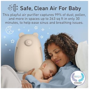 O Purificador de Ar Pure Enrichment PureBaby Kids Bear Sweet Oat oferece filtragem eficiente em até 24 m², ideal para berçários, quartos e ambientes infantis. O sistema de 4 estágios inclui pré-filtro de carvão ativado, filtro HEPA verdadeiro, revestimento prolongador de vida útil e luz UV-C opcional, removendo até 99,97% de partículas, alérgenos e microorganismos. Apresenta design lúdico e seguro, com trava de proteção para crianças, painel touch, 3 velocidades de ventilação, temporizador, modo noturno e iluminação ajustável em sete cores suaves. Modelo compacto, fácil de posicionar em móveis, acompanha lâmpada UV, manual e garantia de 5 anos Pure Enrichment.