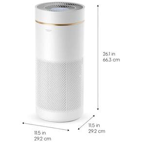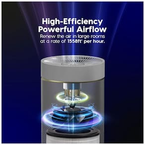 O filtro H13 True HEPA captura até 99,97% das partículas, como poeira doméstica, pólen e outros poluentes de 0,3 microns ou maiores, em um raio de 360°, enquanto o filtro de carvão ativado ajuda a reduzir odores desagradáveis de animais de estimação, odores domésticos e fumaça de cozinha e incêndios florestais.
