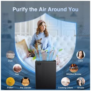 O indicador de filtro de verificação avisa quando é hora de substituir o filtro, e o funcionamento é fácil e econômico. Você pode ligar, desligar e definir o modo de velocidade do ventilador (LMH) conforme necessário para capturar a quantidade ideal de poluentes. Além disso, a opção de temporizador (2H, 4H, 8H) permite programar o tempo de operação do purificador.