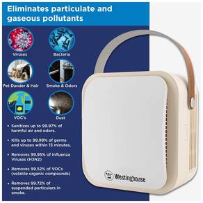 TECNOLOGIA NCCO PATENTEADA DE QUALIDADE MÉDICA O reator NCCO patenteado decompõe todos os poluentes gasosos VOCs, odores, fumaça e contaminantes com Oxigênio Ativo e os converte em compostos inofensivos, dióxido de carbono e moléculas de água poluentes presos vírus, bactérias, alérgenos no filtro HEPA se tornarão inertes MATA E ELIMINA Enquanto outros purificadores apenas prendem e zenam poluentes prejudiciais, o Purificador de Ar Westinghouse elimina germes, alérgenos e elimina VOCs, fumaça, odores e até resquícios de gotículas de saliva presentes por conta de espirros e tosses e com Oxigênio Ativo ÓTIMO PARA VIAGENS O purificador de ar portátil é o seu purificador de tamanho pessoal em movimento. Use o em seu carro, em um avião ou trem e em um hotel, tornando o ideal durante viagens SISTEMA DE PURIFICAÇÃO DE 3 ESTÁGIOS O purificador de ar 1701 usa a tecnologia de 3 estágios para limpar o ar conforme o ar se move através de um gerador de oxigênio, filtro True HEPA e o reator NCCO patenteado, ar limpo e higienizado é liberado PURIFICADOR PORTÁTIL PODEROSO Pesando apenas 907 g, este purificador de ar portátil pessoal vem com uma pulseira de tecido e couro Ele pode limpar o ar de 99 dos poluentes do ar em qualquer espaço por até 8 horas com uma única carga O modelo de purificador de ar Westinghouse 1804 apresenta duas velocidades de ventilador no modo silencioso para uma limpeza de ar fácil e silenciosa. Ele funciona com uma bateria de íon de lítio poderosa e recarregável que dura 8 horas com uma única carga, fornecendo proteção onde você precisa. Um recurso especial de segurança desliga automaticamente o purificador de ar pessoal por 30 minutos a cada 8 horas de operação Marca: Não Informado