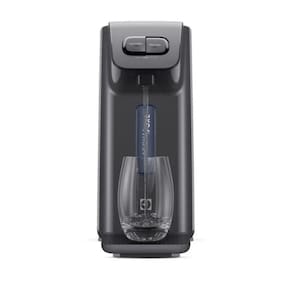 Purificador Electrolux Efficient PE15 Bivolt com Tecnologia Acqua Pure, filtro de carvão ativado com íons de prata e barreira de polipropileno. Reduz cloro, odores, sabores e inibe bactérias. Design compacto e alerta de troca de filtro.Função retrolavagem