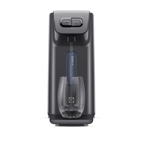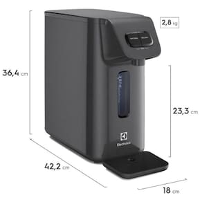 O Purificador de Agua Electrolux Efficient (Gelada, Fria e Natural) Branco e a combinacao perfeita entre saude e modernidade, e conta com um filtro que retem as impurezas, melhorando a qualidade da agua. Com o purificador voce tem certeza de que sua agua estara sempre fresca e livre de impurezas. Ideal para beber ou cozinhar todos os dias, de forma ainda mais pratica. A Tecnologia Acqua Pure garante alta eficiencia na filtragem atraves de um filtro composto por carvao ativado com ions de prata e uma barreira de polipropileno que filtra as impurezas solidas. Inibe o desenvolvimento de bacterias*, retem particulas de 5 a 15m (particulas invisiveis a olho nu)** e reduz em ate 75** o excesso de cloro livre na agua, alem de reduzir odores e sabores. Evite o descarte de garrafas pet no meio ambiente com a economia ate 2000 garrafas plasticas de 1,5L***. A troca de refil e facil e simples. Quando necessario, uma luz se acendera no painel. A recomendacao e que a troca seja feita a cada 6 meses, utilizando um filtro para garantir o desempenho do purificador. Uma das facilidades do Purificador de Agua Electrolux Efficient e que voce mesmo pode fazer sua limpeza e manutencao, sem a necessidade de acionar um tecnico. Alem disso, o purificador dispensa o uso de pilhas e possui design compacto e versatil, com a altura ideal para diversos recipientes, como copos, panelas e jarras. Ocupa menos espaco e pode ser instalado na parede.