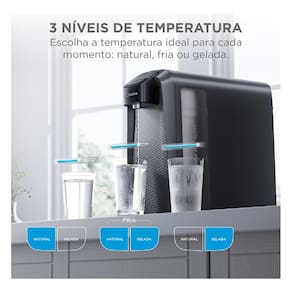 Para maior conveniencia, o purificador e bivolt, adaptando-se facilmente a diferentes instalacoes eletricas, e possui um LED indicativo que alerta para a troca do refil, que deve ser realizada a cada 3600 litros ou 6 meses de uso. Com a garantia de 12 meses do fabricante, o SlimPure oferece seguranca e confiabilidade. Este purificador e a escolha perfeita para quem valoriza saude, praticidade e economia, garantindo agua de qualidade superior a cada copo.