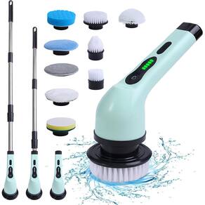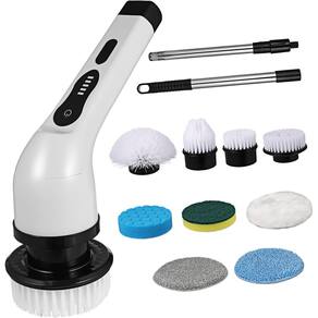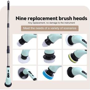 Purificador giratório elétrico sem fio 9 cabeças de limpeza de reposição à prova d'água escova de limpeza Especificação: Material do produto: ABS Tamanho do produto: 25 x 20cm / 9,84 x 7,87in Haste telescópica: 65,5cm / 25,79in Bateria: 2000mAh embutida Tempo de carregamento: cerca de 3h Tempo de trabalho: 30-50min Velocidade: 2 marchas Potência nominal: 25W Frequência nominal: 50Hz Grau à prova d'água: IPX6 Cabeça da escova: Opcional 6pcs escova redonda grande, escova pontiaguda, escova de lã curta, escova de polimento macia, escova de fibra grossa, escova de esponja 9 unidades escova redonda grande, escova redonda pequena, escova pontiaguda, escova semicírculo, escova de polimento macia, escova de fibra grossa, escova de esponja, escova de lã curta, escova de pano de lã
