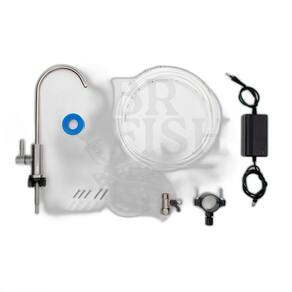Purificador de água por osmose reversa BBI, retém partículas maiores que 0,0001 mícron, reduz sais em 94%, com 2 elementos filtrantes e torneira de bancada em aço inox 304.Função retrolavagem