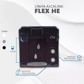 O Purificador Flex HE de Água Alcalina Ionizada oferece água em sua forma mais pura, sem cheiro, sem gosto e sem cor. Ele tem como características a mais alta tecnologia em filtragem de água, o seu poderoso processo alcalinizador e o eficaz sistema de refrigeração.