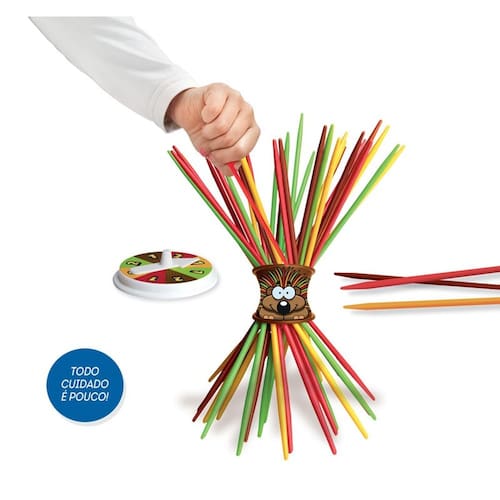 Desafie seus amigos, puxe as varetas sem derrubar o porco espinho Um brinquedo muito divertido e bem legal. Informações sobre o produto: Altura: 27 Largura: 10 Profundidade:26 Peso: 0,600 Contém: 1 base 32 varetas de 4 cores diferentes Produto Certificado: CEBRI/IQB 2276 NM 300/2002 Imagens meramente Ilustrativas. As cores pode variar. Ean: 7896448110912