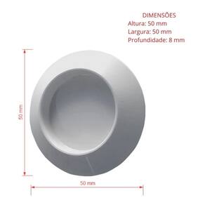 Ficha Técnica: -Marca: Smartfix / Plasnature -Linha: Utilidades -Modelo: Puxador redondo com fixação adesiva -Dimensões (mm): 50 altura x 50 largura x 8 profundidade -Peso líquido: 8g -Material: Polímero de engenharia com fita dupla face Norton -Aplicação: Box de banheiro, janelas de correr, portas de correr e armários -100% Feito no Brasil - 01 unidade de puxador