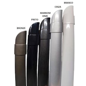 - Quais as cores disponíveis? R: O Puxador Arco H Polímero está disponível nas cores Branco, Preto, Cinza Fosco, Marrom e Bronze.