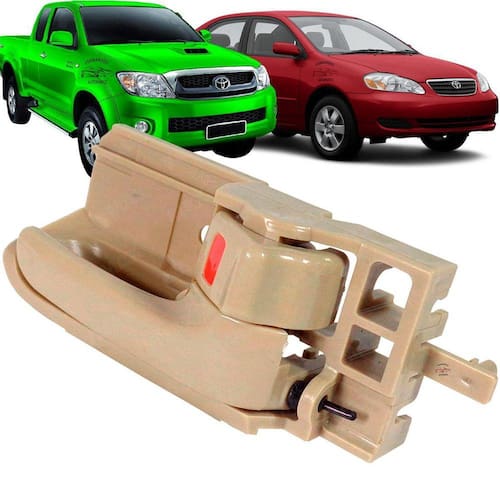 A maçaneta interna lado direito é um item essencial para garantir o funcionamento adequado das portas do seu Toyota Corolla ou Hilux. Compatível com as versões 2002 a 2008 do Corolla geração 9 e as versões 2006 a 2015 da Hilux geração 7 , essa maçaneta garante a abertura e o fechamento seguro das portas dianteiras ou traseiras do seu veículo.