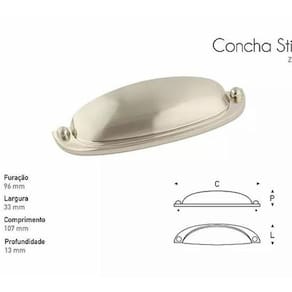 Puxador Concha Stillo 96Mm Dourado - Gruppa O Puxador Modelo Concha Stillo facilita na abertura e o fechamento de portas de armários e gavetas. Trazem para o móvel a funcionalidade e beleza, tornando-se muitos projetos, um elemento indispensável. Características:Furação: 96mmLargura: 33mmComprimento: 107mmProfundidade: 13mmMaterial: zamacCor: Dourado