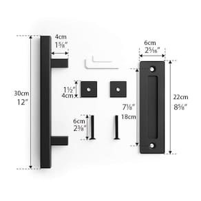 1. Material Premium: Feito de material forte e forte, forte e durável, apto para uso a longo prazo.2. Design fino: Bordas chanfradas polidas suaves, design ergonômico evitam lesões inesperadas e proporcionam uma sensação de manuseio mais confortável. 3. fácil de instalar: o conjunto de puxadores da porta do celeiro inclui todo o hardware necessário para instalar. Basta fazer dois furos na porta para combinar a maçaneta e puxar com dois parafusos.4. Versatilidade - O conjunto de puxadores pode ser instalado em uma variedade de materiais nas portas internas e externas. É perfeito, portas de vidro e alumínio. portas, prateleiras, roupeiros, armários, portas de arrumação, etc.5 adequados. Dimensão: comprimento total 30 cm/11.8 polegadas; painel traseiro (CxW) 22x6cm/8.7x2.4in. painel da porta (se você quiser usar um painel de porta mais grosso, você pode comprar um parafuso mais longo para combinar com a porta)