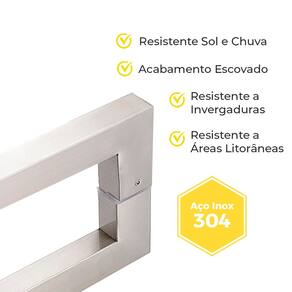 Puxador é um acessório essencial para facilitar a abertura da porta, além de contribuir para a decoração com um visual moderno. Resistente, pode ser utilizado em regiões litorâneas e exposto a sol e chuva sem riscos de manchas ou ferrugem, graças ao seu material de aço inoxidavel 304, adequado para diversos modelos de portas, como pivotante, de madeira, de vidro, de alumínio, de aço, de correr e portões.