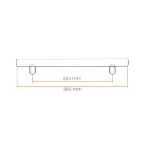 Resistência e durabilidade: Fabricado em inox, oferece alta resistência à oxidação, ideal para ambientes úmidos. Design versátil: Com haste redonda e medidas de 320 mm entre furos e 380 mm de comprimento total, adapta-se a diferentes estilos de móveis.