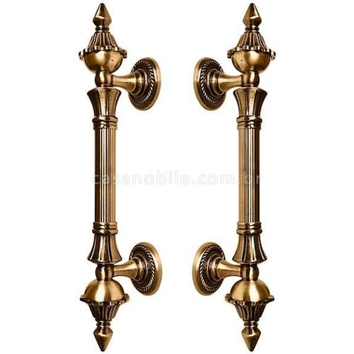 Comprimento: 280 mm Largura: 41 mm Base Profundidade: 57 mm Distância entre Furos: 145 mm Peso Par : 0,50 Kg Material: Zinco Cor: Ouro Velho Acompanha: Peças para instalação Quantidade: Par de puxadores para os 2 lados da porta Puxador Duplo Código: M100-CFE Marca: Máxima Metais