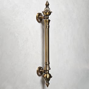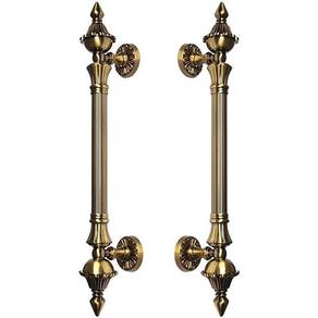CARACTERÍSTICAS: Comprimento: 530 mm Largura: 60 mm Profundidade: 90 mm Distância entre Furos: 360 mm Peso Par : 1,95 Kg Material: Zinco Cor: Ouro Velho Acompanha: Peças para instalação Quantidade: Par de puxadores para os 2 lados da porta Puxador Duplo Código: M104-CFE Marca: Máxima Metais