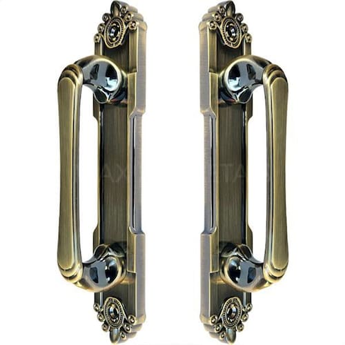 Puxador duplo colonial porta correr madeira rústico 220mm atenas bronze antigo Puxador duplo rústico colonial porta pivotante ou de correr atenas 220mm bronze antigo