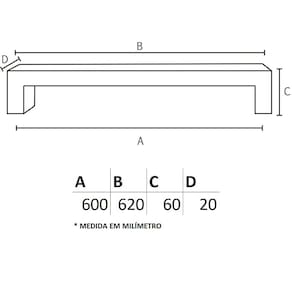 1 Puxador Duplo DF 992 - Preto - 60 cm
