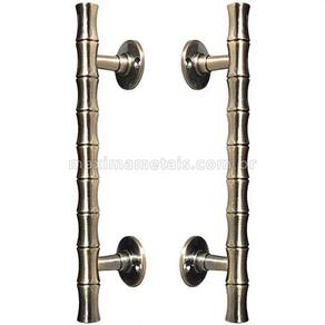 Características: Comprimento: 195 mm Largura: 15 mm Profundidade: 40 mm Distância entre furos: 130 mm Diametro base : 32mm Peso par : 0,500kg Material: zinco Cor: bronze antigo Acompanha: peças para instalação Quantidade: par de puxadores para os 2 lados da porta puxador duplo Código: m135-bra Marca: máxima metais