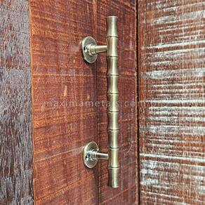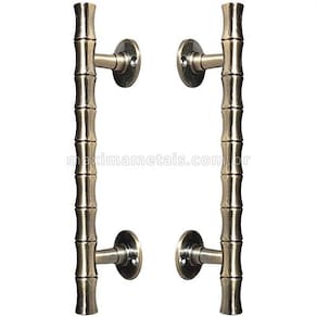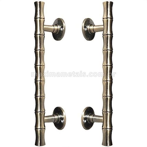 Características: Comprimento: 195 mm Largura: 15 mm Profundidade: 40 mm Distância entre furos: 130 mm Diametro base : 32mm Peso par : 0,500kg Material: zinco Cor: bronze antigo Acompanha: peças para instalação Quantidade: par de puxadores para os 2 lados da porta puxador duplo Código: m135-bra Marca: máxima metais