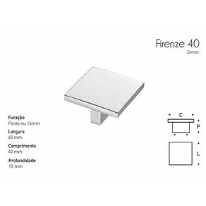 Puxador : firenze 40x40mm Marca: Gruppa Furação: Ponto ou 16mm Largura: 40mm Comprimento: 40mm Profundidade: 19mm Acabamento: Preto Ean: 7897889800974