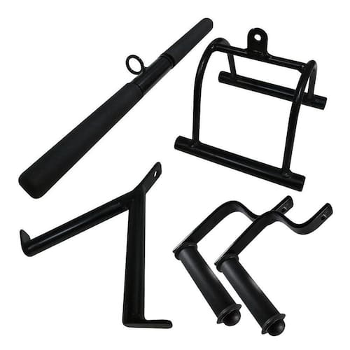 Puxador reto triceps estribo musculação kit academia ----- kit 5 puxadores academia musculação treino ------ 05 unidades : 01 puxador reto com giro 50 cm , 01 puxador triangulo, 01 puxador v, 02 estribos aberto Puxador reto 50 cm feito em aço com pega emborrachada e giro central, puxadores triangulo e v feito em aço, puxador estribo aberto feito em aço maciço com pega em pvc giratória. Todos com soldas reforçadas, ótimo acabamento e em alta qualidade para serem usadas nos mais diversos aparelhos de sua academia, vai tornar seu treino mais completo, produto de , nacional e com . Especificações técnicas puxador reto - material: tubo oco de aço 1020 - parede do aço: 2 mm - material argola: aço trefilado 1020 com 6,5 mm de espessura - material da pega: manopla emborracha de 1 1/4 32mm - todo soldado em mig soldas reforçadas - pintura eletrostática texturizada e anti-ferrugem - comprimento total do puxador: 50 cm - peso do produto unidade : 1 kg - cor: preto Especificações técnicas puxador triangulo - material: tubo oco de aço 1020 1 - parede do aço: 2 mm - material dos arcos: tubo oco de aço 1020 1/2 12,7 mm espessura - material argola: aço trefilado 1020 com 6,5 mm de espessura - todo soldado em mig soldas reforçadas - pintura eletrostática texturizada e anti-ferrugem - comprimento total do puxador: 17 x 14 cm altura x largura - peso do produto unidade : 1 kg - cor: preto Especificações técnicas puxador v - material: tubo oco de aço 1020 1 - parede do aço: 2 mm - material argola: aço trefilado 1020 com 6,5 mm de espessura - todo soldado em mig soldas reforçadas - pintura eletrostática texturizada e anti-ferrugem - comprimento total do puxador: 25 x 30 cm altura x largura - peso do produto unidade : 600 gramas - cor: preto Especificações técnicas estribo aberto - material: aço maciço de 1 x 1/4 espessura - furo: 11 mm - material da pega: manopla com giro total em pvc com pega de 1 1/4 32 mm - todo soldado em mig soldas reforçadas - pintura eletrostática texturizada e anti-ferrugem - comprimento total do puxador: 20 x 16 cm altura x largura - peso do produto unidade : 500 gramas - cor: preto Importante - podemos montar kits com a quantidade e itens que forem necessárias para sua academia - nossos puxadores são profissionais, testados e aprovados, ótimo custo benefício