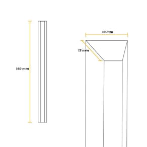 Comprimento: 150 mm Largura total: 10 mm Altura total: 13 mm