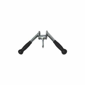 Puxador V Maciço Alça de Borracha. Produzido em aço cromado, é resistente e tem o mais alto padrão de fabricação com qualidade profissional. Em formato V e com roldana, tem pegada revestida em borracha nas extremidades para garantir conforto, aderência e segurança. O ilhó do cabo é grande o bastante para carabiners robustos. O puxador V é utilizado em máquinas a cabo que possuem pilhas de pesos e permitem ao usuário usar uma variedade de alças, assim, tonificando diferentes músculos.Especificações TécnicasCor: Prata e pretoTamanho: 60cm - comprimentoComposição: Aço e borrachaPeso: 3kgGarantia: 03 mesesConteúdo da Embalagem: 1 puxador VImagens Meramente Ilustrativas