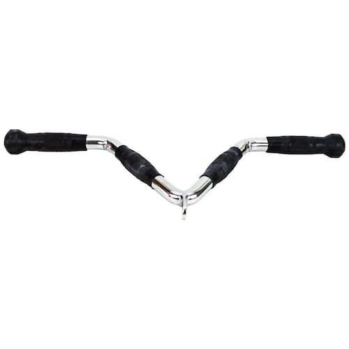 - marca: ahead sports - categoria: strenght - codigo: as5050 - modalidade: musculação - material: aço, carbono e pvc - indicado para: treino de resistência e força - peso: 3,3kg - dimensões lxcxa : 63cm comprimento - cor: aço cromado e preto - procedência: nacional - observações: compatível com todos os cabos de rotação - conteúdo da embalagem: 1 puxador v reto emborrachado maciço
