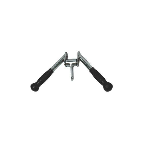 Puxador V Maciço Alça de Borracha. Produzido em aço maciço, é resistente e tem o mais alto padrão de fabricação. Em formato V e com roldana, tem pegada revestida em borracha nas extremidades para garantir conforto e aderência. O ilhó do cabo é grande o bastante para carabiners robustos. O puxador V é utilizado em máquinas a cabo que possuem pilhas de pesos e permitem ao usuário usar uma variedade de alças, assim, tonificando diferentes músculos. Especificações Técnicas Cor: Prata Tamanho: 60cm - comprimento Composição : Aço e borracha Peso: 3kg Garantia: 03 meses Conteúdo da Embalagem: 1 puxador Imagens meramente ilustrativas