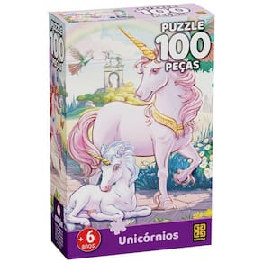 Unicórnio é um animal mitológico que tem a forma de um cavalo, com um único chifre em espiral. Sua imagem está associada à pureza e à força. Segundo as narrativas são seres dóceis e encantadores. Não deixe de brincar e se divertir com este quebra-cabeça de 100 peças, para você encaixar uma a uma até formar está linda de unicórnios. Mais que um passatempo divertido, os quebra-cabeças desenvolvem o raciocínio, relaxam e se transformam num autêntico hobby A partir de 6 anos Quantidade de peças: 100 Dimensões Puzzle montado: 36,3 x 26,4 cm Homologação Inmetro: CE-BRI/IQB 006352 52216/18-016 Ean: 7908010144314