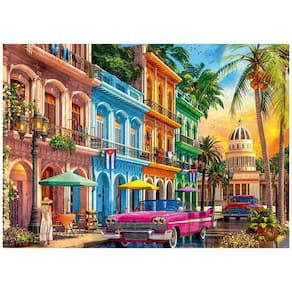 Explore a história de Havana através de suas construções coloridas, varandas adornadas e carros antigos, montando esse quebra-cabeça peça a peça!