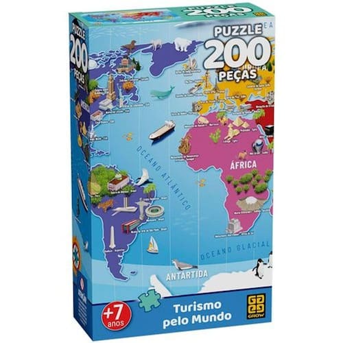 Puzzle 200 Peças Turismo Pelo Mundo - GrowO Puzzle 200 Peças Turismo Pelo Mundo da Grow é uma excelente opção para quem busca um passatempo estimulante e relaxante. Com 200 peças de alta qualidade, este quebra-cabeça oferece horas de entretenimento para todas as idades. As imagens vibrantes de destinos turísticos ao redor do mundo tornam a experiência ainda mais envolvente. Ideal para desenvolver habilidades cognitivas enquanto se diverte!Diferenciais do Produto:Desenvolvimento Cognitivo: Estimula o raciocínio lógico, a concentração e a paciência.Criatividade e Relaxamento: Ideal para momentos de diversão, relaxamento e descontração em família.Qualidade Grow: Reconhecida pela durabilidade e encaixe preciso das peças.Mais sobre o Produto:Material Resistente: Composto por papel de alta qualidade que assegura a durabilidade do produto.Imagens Coloridas: Destinos turísticos ao redor do mundo trazem um toque visual envolvente e educativo.Dicas de Uso:Organização das Peças: Separe as peças por cores e formatos para facilitar a montagem.Comece pelas Bordas: Monte primeiro as bordas e depois trabalhe no centro do quebra-cabeça.Ambiente Adequado: Escolha um local tranquilo e bem iluminado para maior conforto.Compartilhe a Diversão: Convide amigos ou familiares para montar o quebra-cabeça e tornar a experiência mais divertida.Ficha Técnica:Marca: GrowNome do Produto: Puzzle 200 Peças Turismo Pelo MundoIdade recomendada: A partir de 7 anosSelo Inmetro: CE-BRI/ICEPEX-N 01264-25Contém: 200 peças
