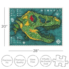 Quebra-cabeça AQUARIUS Jurassic World Map (quebra-cabeça de 1000 peças) — Produtos e itens colecionáveis oficialmente licenciados pelo Jurassic World — Sem brilho — ajuste preciso, 22" x 28"