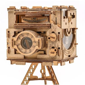 O QUE É CLUEBOX? O Cluebox é uma caixa de quebra-cabeça com várias tarefas lógicas que precisam ser resolvidas para abrir a caixa. Em outras palavras, uma sala de fuga em um formato prático! Nada se baseia no acaso, mas apenas em decisões lógicas. O Cluebox é um jogo de quebra-cabeça que não só oferece muita diversão, mas também pode ser como uma caixa de presente exclusiva. Descubra o Cluebox PRO “Sherlock's Camera” - resolva o quebra-cabeça e revele a identidade do sucessor de Sherlock Holmes! Com mais de 300 elementos, a Cluebox PRO Sherlock's Camera leva a jogabilidade a um nível totalmente novo e avançado que encantará até os fãs de quebra-cabeças mais entusiasmados. A câmera Sherlock tem mais travas e mecanismos do que as Clueboxes anteriores, e o tempo estimado de resolução do Cluebox PRO é quase o dobro! A HISTÓRIA Londres 2023. Um pacote não reclamado de 1914 foi descoberto durante um inventário dos arquivos da Scotland Yard. Desempacotá-lo revelou um objeto que parecia uma câmera. No entanto, a câmera continha símbolos e fechaduras misteriosas em vez do mecanismo usual. Ninguém na Scotland Yard ainda conseguiu resolver o último enigma do detetive. Agora estamos passando a câmera enigmática para você. Estamos convencidos de que você será capaz de resolver o mistério e revelar a identidade do sucessor de Sherlock Holmes! VANTAGENS EM RESUMO - Uma caixa cheia de quebra-cabeças complicados! - 120 minutos de aventura para 1 a 2 jogadores com 14 anos ou mais - Feito de madeira l, acrílico e mármore e feito à mão - Presente perfeito e uma caixa de presente exclusiva - Compartimento secreto: 2 x 0,8 x 0,8 polegadas - Sua própria pequena sala de fuga que você pode levar para qualquer evento! - Pode ser remontado para que outros jogadores possam resolvê-lo - Se você ficar preso, nosso site o ajudará com dicas - Vem com um tripé