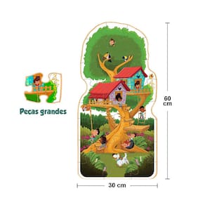 O Quebra-Cabeça Gigante Casa Da Árvore da contém 24 peças grandes para as crianças desenvolverem a percepção visual. Possuem um ótimo acabamento, cores chamativas, fáceis de montar e são muito resistentes.