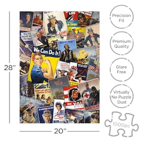 - QUEBRA-CABEÇA DE 1000 PEÇAS: reflita sobre o passado e aprenda sobre a história enquanto monta este quebra-cabeça Smithsonian de 1000 peças com uma colagem de pôsteres militares e militares. O quebra-cabeça completo mede 20 x 28 polegadas