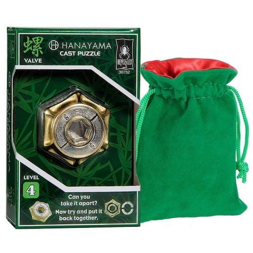 - VALVE Hanayama é um complicado quebra-cabeça de metal que desentrelaça metais. Design pequeno, compacto e interligado. Embalado com bolsa de veludo verde. NOVA versão de 2022
