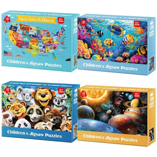 Quebra-cabeças JIGSAW para crianças de 4 a 8 anos: nossos quebra-cabeças modernos para crianças de 3 a 5 anos têm cores brilhantes e designs elegantes que toda criança gosta; o tamanho dos quebra-cabeças é de 35 x 25 cm, cada forma de quebra-cabeça é única e se encaixa perfeitamente; Quebra-cabeças infantis de 3 a 5 anos: os quebra-cabeças infantis Jeacirio são quebra-cabeças desafiadores para crianças de 3 a 5 anos e quebra-cabeças interessantes para crianças de 4 a 8 anos; durante esses jogos de aprendizagem, crianças de 5 a 7 anos, as crianças podem desenvolver habilidades de resolução de problemas e raciocínio lógico; Quebra-cabeças infantis desafiadores: se seus filhos gostam de quebra-cabeças clássicos de 36 peças para crianças de 3 a 5 anos, eles vão adorar quebra-cabeças exclusivos de 100 peças para crianças; comece com este quebra-cabeça infantil colorido e mude para nosso quebra-cabeça desafiador de 100 peças para crianças; Brinquedos de quebra-cabeça de aprendizagem: esses quebra-cabeças de peças grandes podem ajudar seu filho a melhorar as habilidades motoras e a persistência; design vívido com prnicesses, contos de fadas, unicórnios e animais chamará a atenção das crianças por horas; BRINQUEDOS EDUCACIONAIS: as atividades certas para crianças de 4 a 8 anos ajudam a desenvolver habilidades de resolução de problemas, persistência e pensamento lógico; comece com nossos quebra-cabeças exclusivos para crianças de 4 a 8 anos e mude para quebra-cabeças Jeacirio para crianças de 8 a 10 anos - Entre no mundo vibrante de "Nature Creatures", o melhor quebra-cabeça de 100 peças que captura o coração dos aficionados por quebra-cabeças adultos e amantes de quebra-cabeças infantis em uma união harmoniosa. Feito por Jeaciro, use cores vivas e belas cenas para retratar mapas dos EUA, mares oceânicos, animais e sistema solar. cada peça explode com cores ricas e vibrantes que criam uma imagem visualmente impressionante quando concluída. Tamanho do acabamento: 15 x 10,6 polegadas/38 x 26 cm. Quebra-cabeças para crianças de 6 a 8 a 10 anos - Feito com amor, respeito e qualidade premium: na Jeacirio, nossa paixão por quebra-cabeças para crianças de 4 a 6 anos é acompanhada apenas pelo nosso compromisso com a sustentabilidade ambiental. É por isso que cada quebra-cabeça que criamos reflete nossa dedicação a essa causa. Desde colaborar com artistas e ilustradores emergentes até usar apenas materiais não tóxicos e reciclados, garantimos que todos os quebra-cabeças infantis da Jeacirio de 5 a 8 anos sejam um passo em direção a uma Terra mais verde. - Jogo interessante para pais e filhos: os quebra-cabeças de 100 peças para crianças de 6 a 8 e 8 a 10 anos são um bom brinquedo educativo. Fique longe de telefones celulares e videogames, proteja a visão das crianças. Você pode cooperar com a família ou amigos para completar quebra-cabeças de 100 peças para adultos, desfrutar de diversão coletiva - Ótimo presente para crianças: este pacote de 4 quebra-cabeças de 100 peças para crianças de 6 a 8 a 8 a 10 anos deve ser a escolha ideal de presente para aniversário, dia de ação de graças, Natal. O quebra-cabeça de gato para crianças de 4 a 6 anos. - Marcação de letras na parte de trás e proteção de peças ausentes: a parte de trás do quebra-cabeça de 100 peças é dividida em seções marcadas com letras como "A" a "F", tornando mais fácil para as crianças completarem o quebra-cabeça desafiador. Se você encontrar alguma peça faltando, informe-nos e forneceremos uma solução o mais rápido possível - Quebra-cabeças para idosos e toda a família: nossa excepcional coleção de quebra-cabeças de 100 peças grandes é boa para idosos, mas toda a família pode aproveitar a experiência de montar este quebra-cabeça!