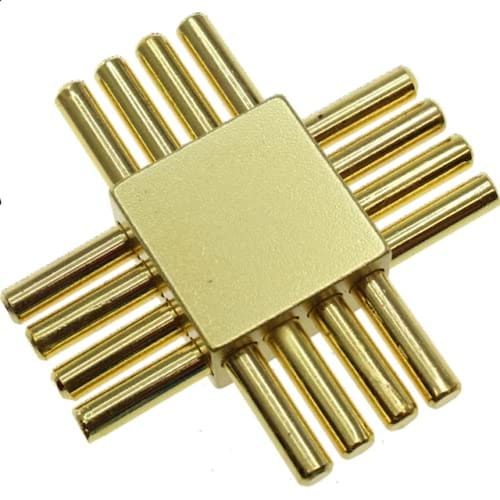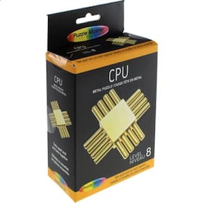 Objeto: Retire as hastes e reinsira-as uniformemente de volta no bloco. O quebra-cabeça da CPU é um quebra-cabeça habilmente projetado no qual o objetivo é colocar as oito hastes uniformemente de volta no bloco depois de removidas. Todas, exceto uma das oito hastes, contêm entalhes que as impedem de se mover livremente para dentro do bloco, exceto quando colocadas na posição correta.