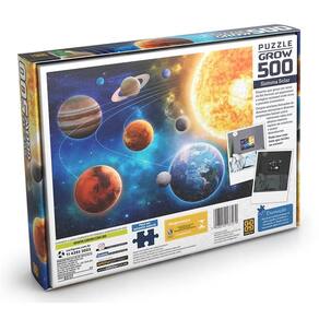 Quebra cabeça puzzle sistema solar brilha no escuro grow Quebra-cabeça de 500 peças especial com tinta que brilha no escuro e proporciona um efeito surpreendente Planetas que giram em torno do sol formam um gigantesco e mágico carrossel onde reina a precisão matemática. Corpos estelares formados de diversos elementos e diversas proporções bailam numa silenciosa valsa num abismo cósmico repleto de mistérios a serem descobertos. A montagem de um quebra-cabeça, por passatempo ou por hobby, traz momentos de alegria a cada peça montada. Aos poucos, um pedaço do mundo vai se formando e, em pouco tempo, uma paisagem maravilhosa está completa e a sensação de ter feito uma viagem ou cumprido um desafio gera uma satisfação inigualável.