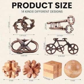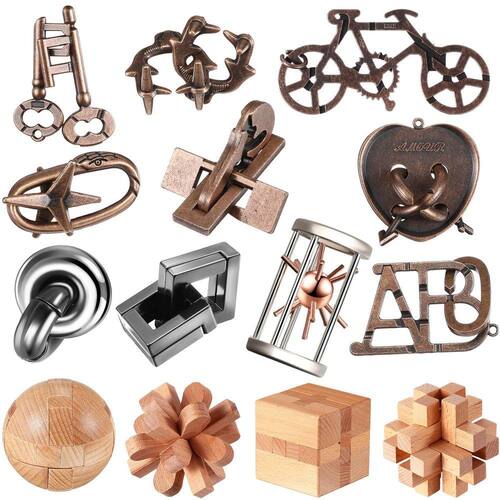 - Ampla quantidade: existem 14 peças de quebra-cabeças, incluindo 10 peças de quebra-cabeças de metal para adultos e 4 peças de quebra-cabeças de madeira, com níveis fáceis a difíceis, permitindo que você se desafie; quantidade suficiente e estilos diversos podem atender às suas necessidades de jogo