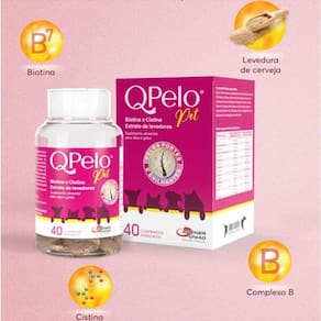 Qpelo Pet Suplemento para Pelos Cães e Gatos Agener, é um suplemento indicado para cães e gatos que necessitem destes nutrientes no fortalecimento dos pelos, auxiliando no combate à queda e nutrindo de dentro para fora. Além disso, é um suplemento alimentar composto por Biotina, Cistina, Extrato de leveduras, Vitaminas e Minerais quelatados